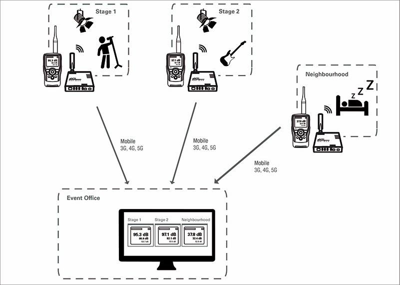 Der “Sound Level Predictor” visualisiert den aktuellen Pegelverlauf und zeigt die Pegelreserve für die aktuelle Messperiode bzw. die kommenden Minuten an. Grüne Balken bestätigen, dass sich der aktuelle Pegel unter dem definierten Grenzwert befindet. Rote Balken alarmieren über bevorstehende Grenzwertüberschreitungen, d.h. wenn der Schallpegel zeitnah reduziert werden muss. Damit erhält der FOH-Techniker ein professionelles Werkzeug, um den Publikums-Schallpegel dynamisch und vorausschauend innerhalb der Grenzwerte zu steuern.