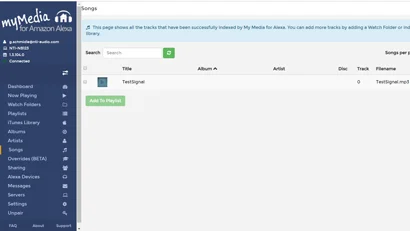 Speichern Sie diese TestSignal.mp3-Datei in Ihrem Alexa My Media Service. Dies ist ein GlideSweep-Testsignal.