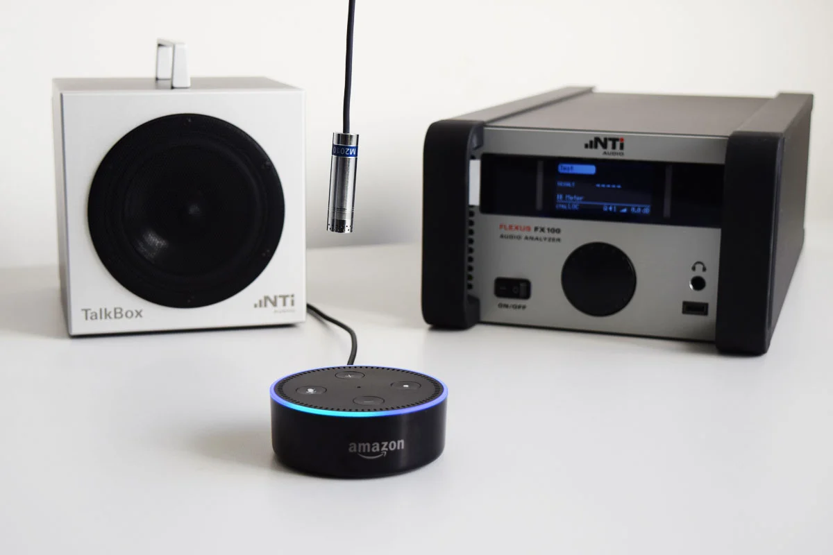 Der Amazon Echo Dot enthält sowohl einen Lautsprecher als auch ein Mikrofon-Array, die nacheinander in einer Open-Loop-Konfiguration getestet werden können. Hier sind die Instrumente, die Sie für den Test benötigen: