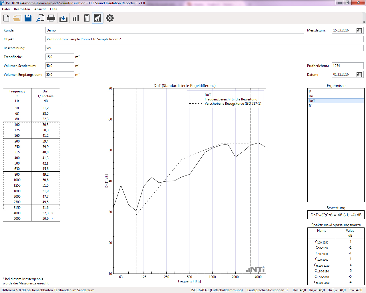 Sound Insulation Reporter Software mit Demodaten herunterladen