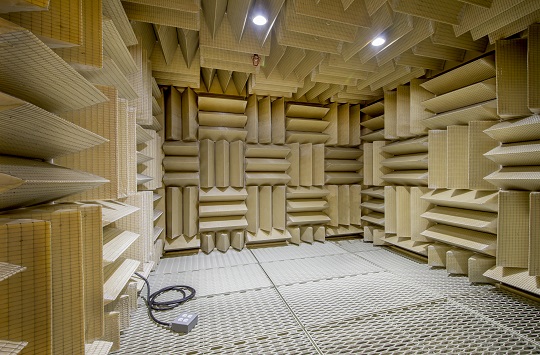 23. Februar 2018 Eliminierung von Reflektionen bei akustischen Messungen Akustische Reflektionen in Räumen tragen – in Form von Nachhall – wesentlich zum Klangempfinden bei. Bei akustischen Messungen an Lautsprechern und Mikrofonen hingegen sollen Einflüsse des Raumes so weit wie möglich ausgeschlossen werden, damit die Messergebnisse reproduzierbar sind und das Messergebnis nicht von der Raumakustik beeinflusst wird. Hierbei hilft das Verfahren der Zeitfensterung der Impulsantwort. Die sprichwörtliche ‚gute Akustik‘ von Konzertsälen entsteht durch den gezielten Einsatz akustischer Elemente, die die von den Musikinstrumenten abgestrahlten Schallwellen durch Reflektion auf verschiedenen Ausbreitungswegen zum Ohr des Zuhörers führen. In Kommunikationsräumen wie z.B. Klassenzimmern wird versucht, die Anzahl der Reflektionen auf ein bestimmtes Mass zu optimieren. So kann eine gute Sprachverständlichkeit gewährleistet werden. Bei akustischen Messungen an Mikrofonen oder Lautsprechern hingegen versucht man, Reflektionen komplett zu vermeiden, denn es sollen ja ausschließlich die Eigenschaften des jeweiligen Prüflings ermittelt werden – ohne die Einflüsse des Messraumes. Eine mögliche Lösung ist die Durchführung der Messungen in einem reflektionsarmen Raum, der mit akustischen Absorbern ausgekleidet ist. Die nötige Dicke der Absorberschicht bzw. die Länge der porösen Keile bringt es mit sich, dass solche Räume groß und teuer sind und daher nur wenigen Akustikern zur Verfügung stehen. In der Praxis finden Qualitätsprüfungen an Mikrofonen und Lautsprechern eher in kleinen Messkammern statt – und daher sind die Ergebnisse zu einem wesentlichen Teil auch raumabhängig. Moderne Signalverarbeitung liefert einen möglichen Ausweg. Schalltoter Raum Impulsantwort Um solche Reflektionen aus dem Messergebnis ‚herausrechnen‘ zu können, müssen diese erst messtechnisch erfasst und visualisiert werden. Dies kann mit einer Impulsantwort erreicht werden, bei der ein sehr kurzer Impuls mit hoher Amplitude übertragen wird. Im Ergebnis sind mehrere Impulse sichtbar: der erste Impuls repräsentiert den Direktschall vom Lautsprecher zum Mikrofon, die kurze Zeit später eintreffenden Impulse mit geringerer Amplitude beschreiben akustische ‚Umwege‘ über Reflektionen an Wänden oder Decke der Messkammer. Grafik oben: Impulsantwort in einem System mit Reflektionen Grafik unten: Frequenzgang des Systems mit Reflektionen GlideSweep Ein GlideSweep ist ein Testsignal, das in der modernen Audio-Messtechnik seit einigen Jahren Verwendung findet. Bei einem GlideSweep wird die Signalfrequenz kontinuierlich erhöht, der wichtigste Parameter ist nach Start- und Stopfrequenz die Dauer des Sweeps. In einem linearen und zeitinvarianten System (LTI-System), wie es ein Lautsprecher in erster Näherung ist, kann die Impulsantwort auch nach Anregung mit einem GlideSweep ermittelt werden. Die Impulsantwort wiederum dient als Basis für alle Berechnungen von Messresultaten wie der Frequenzantwort oder der Verzerrungen. Eine typische GlideSweep-Messung enthält diese Schritte: Anregung des Prüflings mit einem GlideSweep Erfassung und Digitalisierung des analogen Ausgangssignals Berechnung der Impulsantwort aus dem Anregungssignal und dem digitalisierten Signal Berechnung der gewünschten Messergebnisse aus der Impulsantwort Zeitfensterung der Impulsantwort Um die störenden Reflektionen aus dem Messergebnis auszublenden, wird nun nach der Berechnung der Impulsantwort ein Zeitfenster hinzugefügt. Das Zeitfenster sorgt dafür, dass nur der Hauptimpuls der Impulsantwort (der Direktschall) für die weitere Berechnung verwendet wird. Die nach dem Hauptimpuls eintreffenden Reflektionen werden ausgeblendet. Damit ergibt sich ein zusätzlicher Schritt in der Signalverarbeitung: Anregung des Prüflings mit einem GlideSweep Erfassung und Digitalisierung des analogen Ausgangssignals Berechnung der Impulsantwort aus dem Anregungssignal und dem digitalisierten Signal Zeitfensterung der Impulsantwort Berechnung der gewünschten Messergebnisse aus der gefensterten Impulsantwort Grafik oben: gefensterte Impulsantwort Grafik unten: Frequenzgang des Systems ohne Reflektionen Auswirkungen der Zeitfensterung Da die Reflektionen nicht mehr in die Berechnung der Messresultate einfliessen, verschwindet die störende Welligkeit und der Frequenzgang erscheint kontinuierlich. Durch das Abschneiden der Impulsantwort vor der ersten Reflektion gehen jedoch auch Informationen verloren, die für die vollständige Beschreibung des LTI-Systems nötig wären. Als Resultat der Fensterung sind die Ergebnisse unterhalb der Grenzfrequenz f(g) nicht mehr vollständig zuverlässig. Diese Frequenzen erscheinen im Frequenzgang als „unsicher“. Der f(g) errechnet sich aus dem Zeitpunkt t(f) , auf den das Fenster gesetzt wurde: Im oberen Beispiel ist t(f) etwa 210 ms. Daraus resultiert eine Grenzfrequenz f(g) von knapp 5 Hz, die für die oben gezeigte Messung nicht kritisch ist. In kleineren Räumen treffen die Reflektionen schon sehr viel eher ein, so dass die untere Grenzfrequenz bei einem t(f) von 20 ms schon bei 50 Hz liegt. Daraus lässt sich ableiten, dass Lautsprecher und Mikrofon möglichst weit weg von reflektierenden Flächen platziert werden sollten. Sie haben eine Frage? Bitte kontaktieren Sie NTi Audio Lesen Sie mehr über den FX100 Audio Analysator Sehen Sie ein FX100 Produkt Video zu dieser Applikation. Kategorien: Raumakustik & Bauakustik Tags: