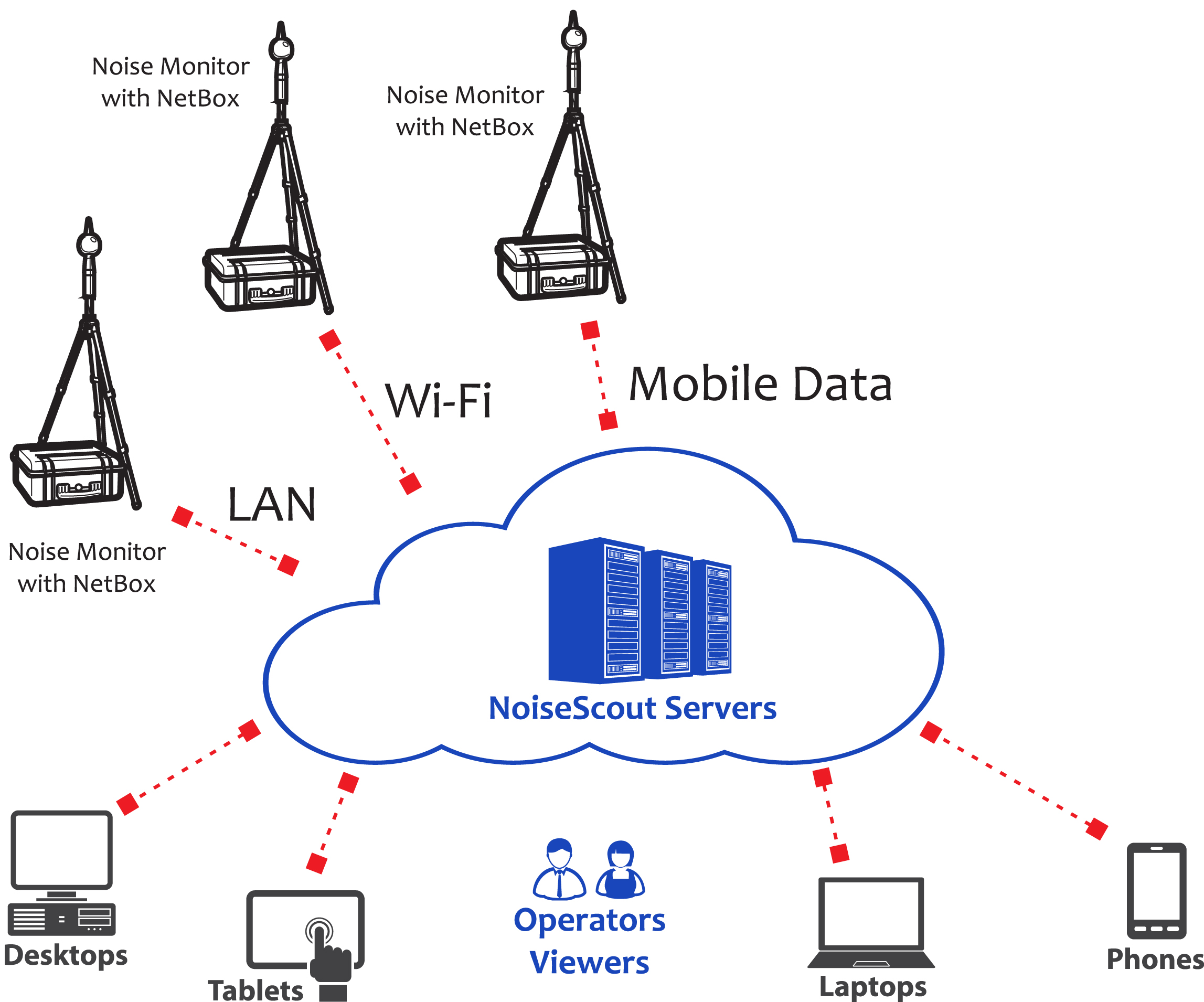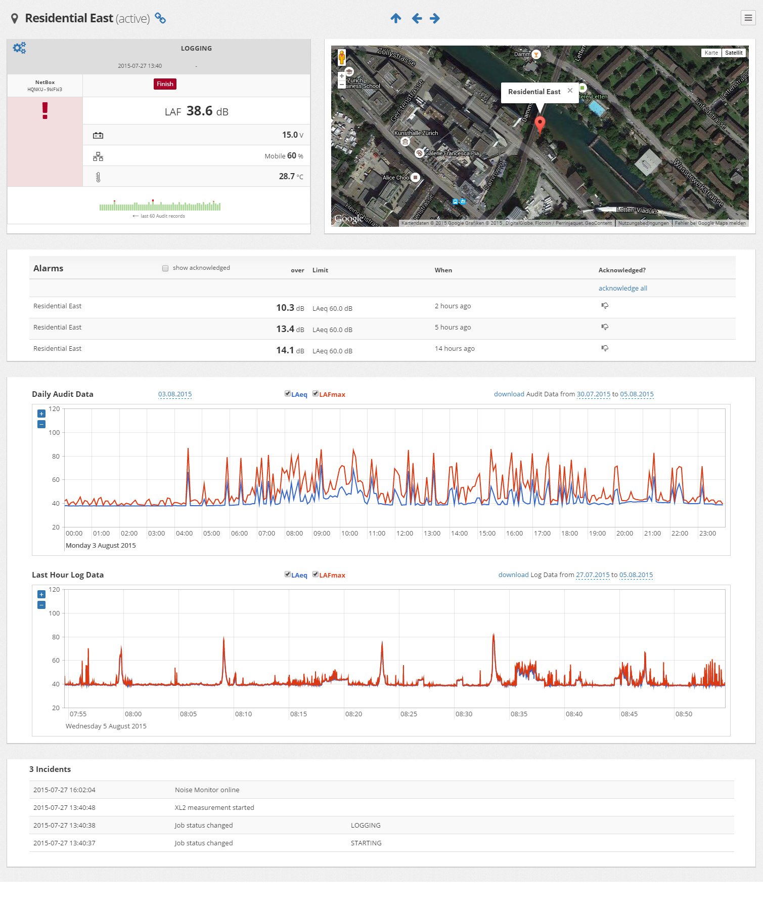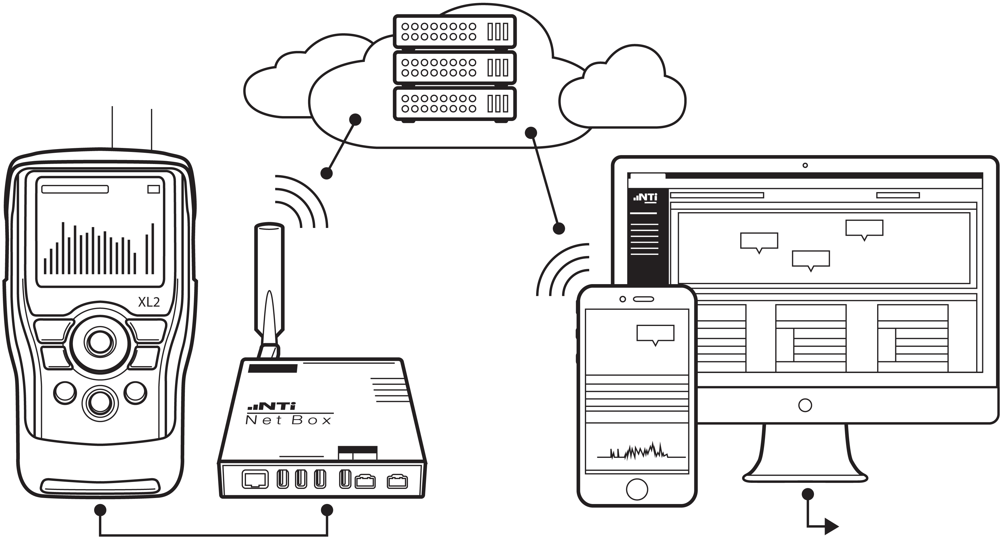 30. Mai 2017 Lärm-Messstation mit Fernabfrage Mit der Lärm-Messstation aus dem Hause NTi Audio lassen sich sowohl kurze Schallpegel-Messungen als auch Langzeitüberwachungen einfach und flexibel realisieren. Das Herzstück stellt dabei der Schallpegelmesser XL2 dar, der über die NetBox an das Internet angeschlossen wird. Der Fernzugriff auf die Messstation erfolgt wahlweise direkt über ein Gateway oder einen Webbrowser. Der Schallpegelmesser XL2 eignet sich ideal für autarke Lärmmessungen. Die NetBox stellt dabei die Verbindung zum Internet her und dient so als Schnittstelle für die Steuerung des Messgerätes und die Fernabfrage der Messdaten. Je nach den technischen Voraussetzungen am Messort wird die Messstation über 3G, LAN oder Wi-Fi mit dem Internet verbunden. Der eichfähige Klasse 1 Schallpegelmesser XL2 ist sofort betriebsbereit. Auf die Lärm-Messstation kann nach Wunsch über ein Gateway oder einen Webbrowser zugegriffen werden. Fernzugriff auf XL2 Schallpegelmesser Im Gateway-Modus kann der Anwender gleichzeitig die Breitbandpegel, Terzbandpegel und die Audio-Aufzeichnung als WAV-Datei vom Messgerät herunterladen. Die Originaldaten stehen während der laufenden Messung zum Download bereit. Zusätzlich können die gewünschten Pegel optional in Echtzeit vom Schallpegelmesser abgefragt werden. Die Kommunikation zum XL2 erfolgt über eine verschlüsselte Verbindung. Live-Pegel per Webbrowser Im Managed-Modus wird der XL2 über das NoiseScout-Webportal konfiguriert. Der Zugriff auf die Messwerte erfolgt browser-basiert von jedem internetfähigen PC oder Smartphone aus. Automatisch generierte E-Mails informieren den Anwender zudem kurzfristig über Grenzwertüberschreitungen am Messort. Die Webseite präsentiert den Live-Pegel und die Pegelverläufe des aktuellen Tages in Sekundenauflösung. Bei mehreren gleichzeitig betriebenen Messstationen werden alle Standorte zusammen mit den ermittelten Pegelwerten in einer Google-Maps-Ansicht übersichtlich präsentiert. Schnelle Datenauswertung Die Analyse und Nachverarbeitung der gewonnenen Messdaten erfolgt mit der optionalen PC-Software Data Explorer. Die Software präsentiert die Gesamtübersicht aller Schallpegeldaten auf einen Blick und erlaubt die individuelle Gestaltung von Messberichten. Robuster Wetterschutz Das Aussen-Messmikrofon M2230-WP ergänzt den XL2 Schallpegelmesser ideal für unbeaufsichtigte Lärmüberwachungen im Freien. Bei Bedarf wird die Lärm-Messstation mit einem wetterfesten Schutzkoffer oder einem Messschrank geliefert. Dank dieser Auswahl an flexibel anpassbaren, professionellen Lärm-Messstationen erhalten Sie eine einfache und zuverlässige Lösung für Ihre autarke Lärmüberwachung. Die Option ‘Externe Messdatenerfassung’ ermöglicht die Fernabfrage der Schallpegelmesswerte vom XL2 in Echtzeit. Der komplette Kommandosatz für die Fernabfrage ist in einem Handbuch ausführlich dokumentiert. Mehr Details ... Live Demo - Autarke Lärmüberwachung Übersicht aller Messstationen Messstation 1 Messstation 2 NoiseScout Prospekt Gateway zu XL2 Schallpegelmesser Ich bin interessiert: Kontaktiere NTi Audio Pressebild(er) zum Download hier. Kategorien: Lärmmessungen Tags: