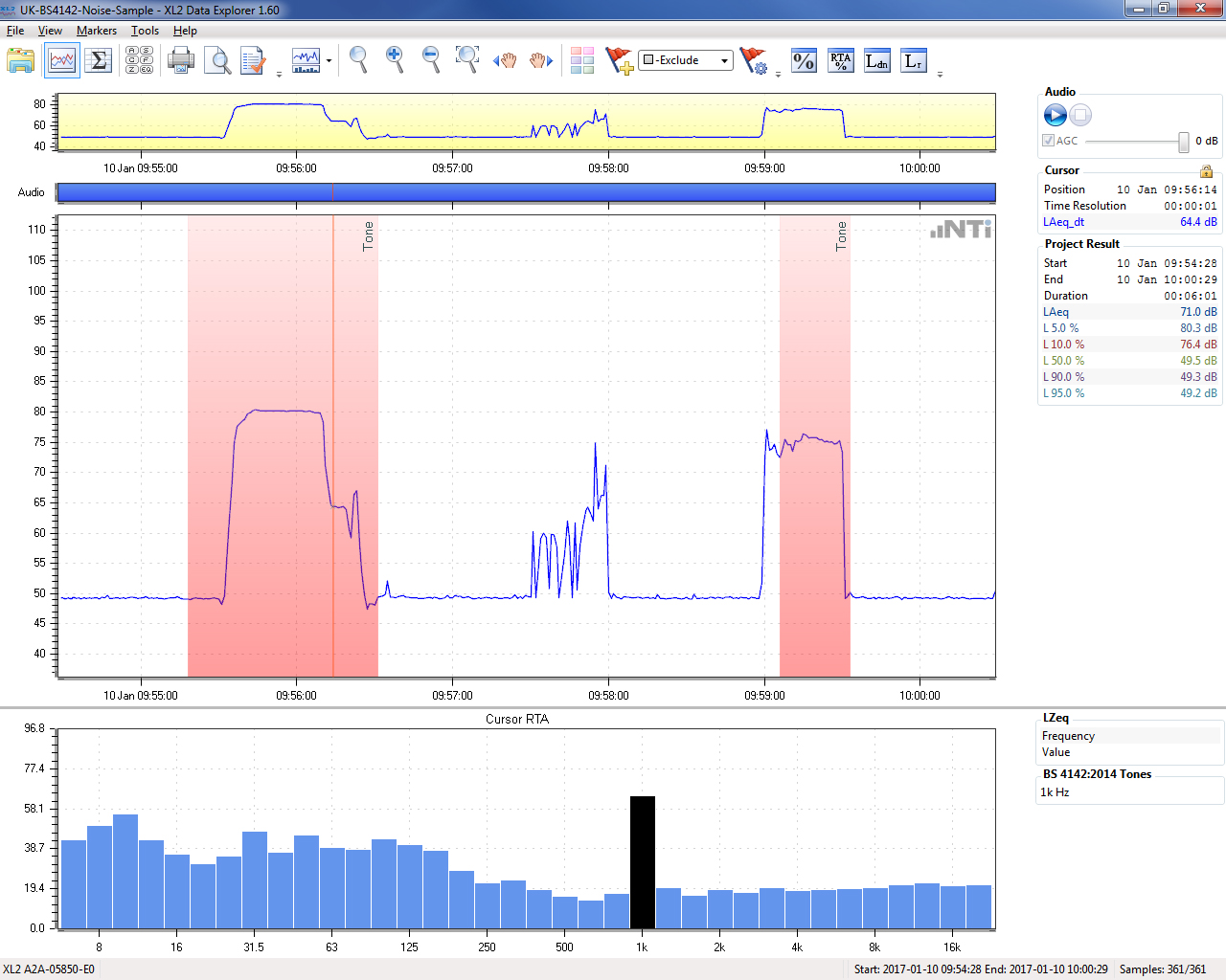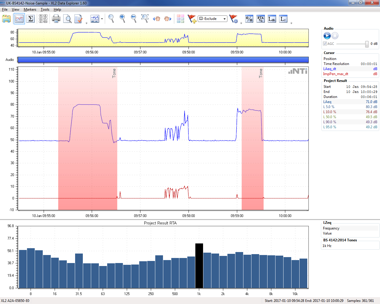 23. März 2017 Lärmbeurteilung nach BS 4142:2014 mit XL2 Der Beurteilungspegel dient als Mass für die Schallbelastung. Die Aufzeichnung aller hierfür benötigten Messdaten wird durch den Schallpegelmesser XL2 gewährleistet. Die Auswertung und Berechnung des Beurteilungspegels Lr erfolgt mit der dazu massgeschneiderten PC-Software XL2 Data Explorer. Neu können Lästigkeitszuschläge für Ton- und Impulshaltigkeit gemäss des Standards BS 4142:2014 für das gewünschte Zeitintervall automatisch hinzugefügt werden. Der Sachverständige erhält damit das professionelle Werkzeug, um Lärmimmissionen objektiv zu beurteilen. Die Untersuchung und Beurteilung von Industrielärm nach dem britischen Standard BS4142 erfolgt durch eine Messung des gemittelten Schalldruckpegels LAeq über eine repräsentative Zeitspanne. Da Geräusche mit hörbaren Einzeltönen oder deutlich hervortretenden Impulsen eine erhöhte Lästigkeit aufweisen, wird diese zusätzliche Störwirkung durch entsprechende Zuschläge zum LAeq berücksichtigt. Die Summe aus dem gemessenem Schallpegel und den einzelnen Zuschlägen ergibt den Beurteilungspegel Lr als Mass für die Lärmbelastung und für den Vergleich mit den geltenden Immissionsrichtwerten. XL2 erkennt Impulse Der Schallpegelmesser XL2 loggt den Immissionspegel präzise und zeichnet parallel auch die Audiodaten als wav-Datei auf. Gleichzeitig ermittelt der XL2 den zu verwendenden Impulszuschlag direkt am Messgerät. Dieser Zuschlag hängt von der verursachten Störwirkung des Impulses ab. Sobald der XL2 einen Impuls laut Definition der Standards «BS4142:2014» oder «Nordtest Method NT ACOU 112» erkennt, zeigt das Messgerät den damit verursachten Impulszuschlag gross auf der LCD an. Gleichzeitig dokumentiert die Logdatei diesen Zuschlag, die Pegeldifferenz des Impulses und die Steigungsgeschwindigkeit. Die Tonhaltigkeit des Geräusches kann aus dem Terzspektrum abgelesen werden. Damit ermöglicht der XL2 die Ermittlung des Beurteilungspegels Lr direkt vor Ort und den sofortigen Vergleich mit den einzuhaltenden Grenzwerten. Data Explorer Software berechnet Beurteilungspegel Lr Für weiterführende Auswertungen einzelner Referenz-Zeitintervalle entsprechend BS4142 ist die PC-Software XL2 Data Explorer verfügbar. Diese Referenz-Zeitintervalle betragen eine Stunde während des Tages (7 -23 Uhr) und 15 Minuten nachts. Die Software berechnet nun neu die Anzahl der Impulse und den Impulszuschlag für jedes Zeitintervall. Zusätzlich kann die Anzahl bzw. Dauer tonhaltiger Geräusche automatisch per Knopfdruck angezeigt werden. Daraus präsentiert Data Explorer die Beurteilungspegel Lr aller Zeitintervalle übersichtlich in Tabellenform. Der Standard BS 5228-1 nennt zum Beispiel Immissionsrichtwerte in Wohngebieten von 65 dB tagsüber und 45 dB nachts. Abschliessend kann die zuvor aufgezeichnete Audiodatei synchron zum Pegelverlauf am PC-Lautsprecher wiedergegeben werden, um die vorgeschlagenen Zuschläge mit dem subjektiven Höreindruck zu vergleichen. Lärmbeurteilung mit Schallpegelmesser XL2 und Data Explorer Zusammenfassend bildet der Schallpegelmesser XL2 in Kombination mit der PC-Software Data Explorer die professionelle Lösung zur vollumfänglichen Bestimmung des Beurteilungspegels Lr nach den Standards «BS4142:2014» oder «Nordtest Method NT ACOU 112». Die Bauartzulassungs-Option erweitert den Schallpegelmesser zum XL2-TA, der PTB-zugelassenen Produktvariante. Das Gesamtmesspaket eignet sich ideal um Geräuschimmissionen objektiv zu dokumentieren und Gutachten zeitsparend zu erstellen. Die Ermittlung des Impulszuschlages am XL2 Schallpegelmesser benötigt das optionale erweiterte Akustikpaket und die Firmware V3.23 oder höher. Die Datenauswertung wird mit der neuen Version 1.60 des Data Explorers optimal unterstützt. Der Datenimport in die Software wird mit einer auf dem XL2 dauerhaft freigeschalteten Option oder mit einem kostensparenden Jahresabonnement 365 ermöglicht. Die Data Explorer Software kann auf beliebig vielen PCs installiert werden und steht somit jedem Mitarbeiter zur Verfügung. Ich bin interessiert: Kontaktiere NTi Audio Mehr zum XL2 Schallpegelmesser hier. Erfahren Sie hier mehr über den XL2 Data Explorer hier. Laden Sie hier die Data Explorer Software herunter. Pressebild(er) zum Download hier. Kategorien: Lärmmessungen Tags: