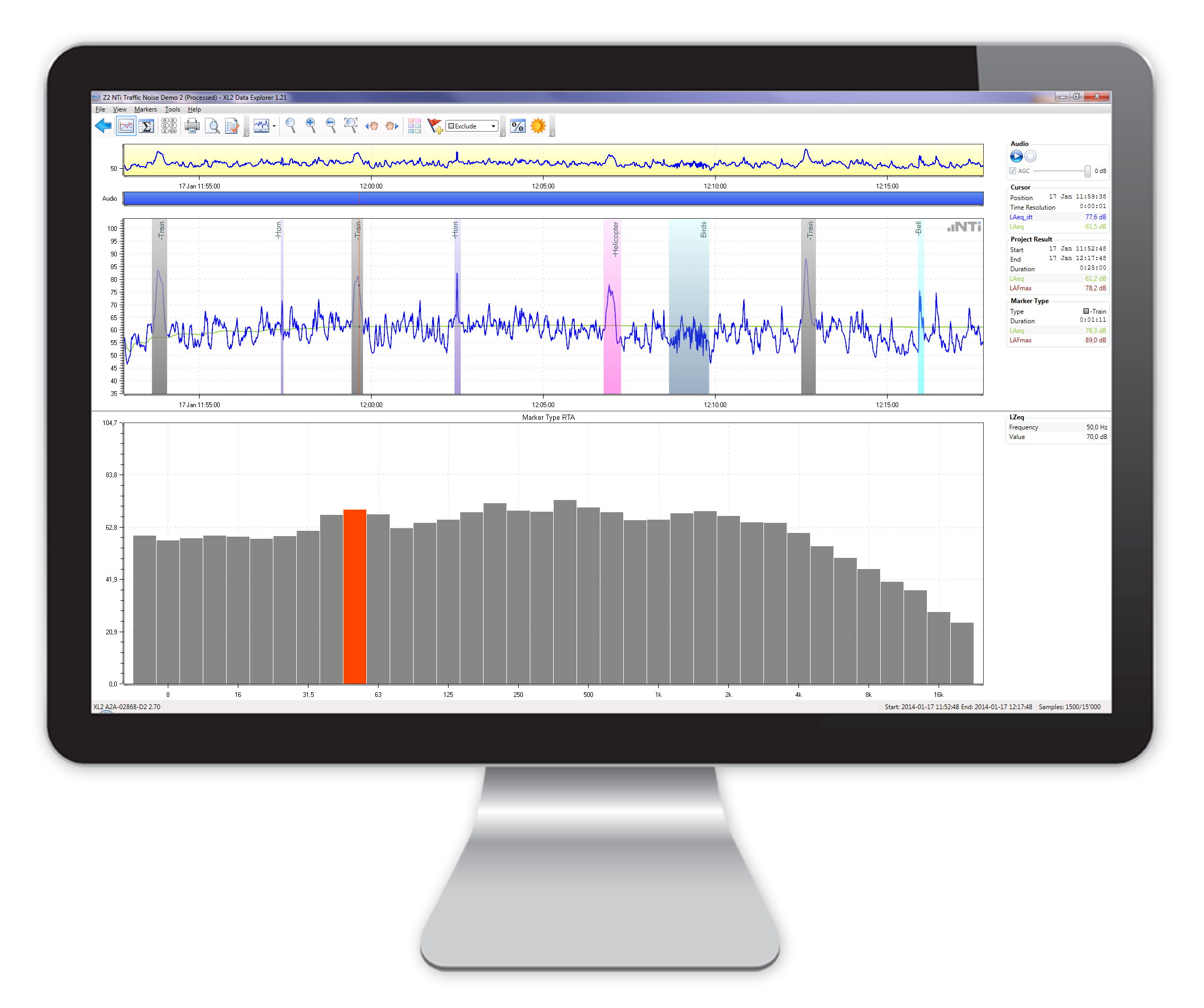 05. September 2014 Umfassende Analysen des Lärmspektrums XL2 Data Explorer ist eine PC-Software zur schnellen und einfachen Analyse von Langzeit-Pegelmessungen. Die Software bietet nun neue Funktionen zur Analyse und Dokumentation der Schallbelastung. Diese umfassen eine erweiterte Berechnung von Umgebungslärm-Spektren und die Bestimmung des Beurteilungspegels. Die aktuelle Version 1.21 des XL2 Data Explorers beinhaltet eine umfassendere Spektralanalyse, die Berücksichtigung der Pegelzuschläge für Ruhezeiten und eine flexiblere Projektverwaltung. Zusammen mit dem Schallpegelmesser XL2 bietet die Software eine herausragende Plattform für professionelle Analysen von Lärm- & Geräuschemissionen. Detaillierte Terzbandanalyse Der Schallpegelmesser XL2 zeichnet den Schallpegelverlauf und die Terzspektren in frei wählbaren Intervallen auf. Zur detaillierten Analyse und Dokumentation werden die Messdaten in die Data Explorer Software importiert. Nun kann der Benutzer das Durchschnittsspektrum einzelner oder mehrerer markierter Zeitabschnitte berechnen. Dies ermöglicht beispielweise die Identifikation tonaler Geräuschquellen, die zu Lärmbelästigungen führen könnten. Für die individuelle Berichterstellung werden die 36 Terzbänder im Bereich von 6.3 Hz bis 20 kHz in einem skalierbaren Diagramm dargestellt. Wurde parallel zur Messung eine wav-Datei mit dem XL2 aufgezeichnet, so ist es natürlich möglich, das Originalgeräusch noch einmal über die PC-Soundkarte anzuhören. Zuschlag für Ruhezeiten Die rechtlichen Grenzwerte für Lärmbelästigungen richten sich üblicherweise nach der Tages- bzw. Nachtzeit. Die XL2 Data Explorer Software berücksichtigt nun den Zuschlag für Ruhezeiten zur Berechnung des Beurteilungspegel entsprechend der TA-Lärm und der DIN 45645. Individuelle Zuschläge lassen sich für die Abend- bzw. Nachtstunden anwenden. Für eine detaillierte Bewertung der Lärmbelastung werden die Tag-Nacht Pegel LDEN, LDN, LTag, LAbend und LNacht einzeln berechnet. Berechneter Beurteilungspegel für einen Tag Flexiblere Projektverwaltung XL2 Data Explorer erlaubt dem Benutzer nun den Speicherort für seine Projektdaten frei zu organisieren; lokal auf dem PC, einem externen Datenträger oder auf einem Netzlaufwerk. Dies ist von grossem Vorteil für die gemeinsame Verwendung von Messdaten durch mehrere Nutzer in einem Büronetzwerk. Schnelle Datenanalyse Die Data Explorer Software unterstützt Akustiker und Experten bei der Visualisierung, detaillierten Auswertung und Nachbearbeitung grosser Datenmengen. Sie präsentiert die Gesamtübersicht aller Schallpegeldaten auf einen Blick und erlaubt die individuelle Gestaltung von Messberichten. Der Messdaten-Import in die Software wird mit einer entsprechenden Option auf dem XL2 ermöglicht. Die neuen Features stehen für alle lizensierten Nutzer des Data Explorers zum kostenlosen Download bereit. Fordern Sie hier ein Angebot zum XL2 Data Explorer an. Erfahren Sie hier mehr über den XL2 Data Explorer hier. Laden Sie hier die neue XL2 Data Explorer Software V1.21 herunter. Pressebild(er) zum Download hier. Kategorien: Archiv Tags: