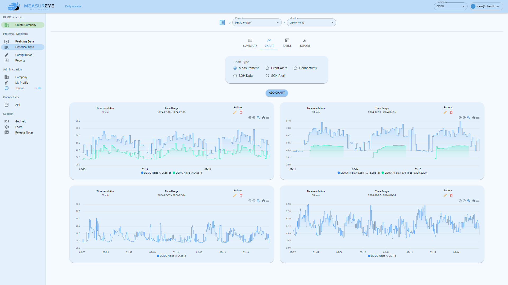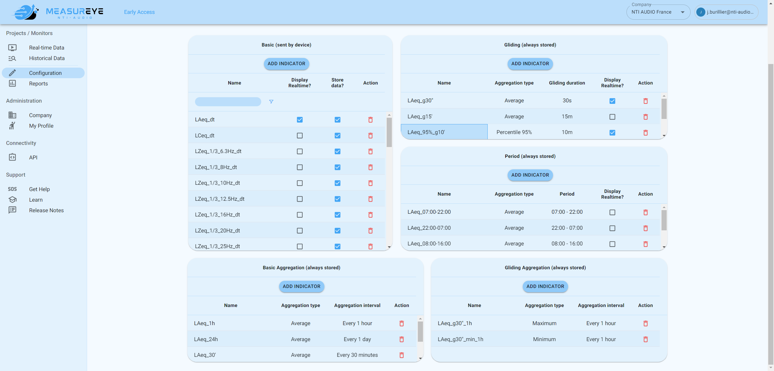 Sie können die von Ihnen gewünschten Messwerte aus über 800 Rohdaten wählen, die direkt von den integrierten Messgeräten stammen. (z.B. LAeq_dt, LAFmax_dt, LAFT5, LZeq_1/3_6.3Hz_dt, ...)