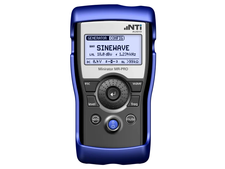 The MR-PRO signal generator and XL2 Audio Analyzer are valuable instruments for fast troubleshooting of the audio signal path throughout the live system. Start by using the MR-PRO to verify the phantom power supply for microphones. Then to quickly find faults in cables and devices, send a balanced signal with the MR-PRO and measure balance, level and signal-to-noise ratio with the XL2. Additionally you can listen to the audio line with the XL2 internal speaker for a quick audible verification.