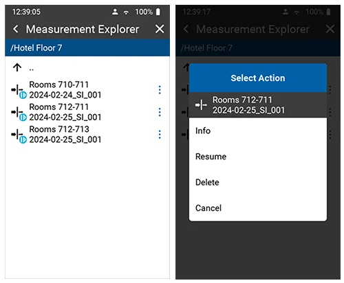 TIP: Reopening and resuming measurements is also available for Sound Level Meter and Reverberation Time measurements that were recorded as a Measurement Series.