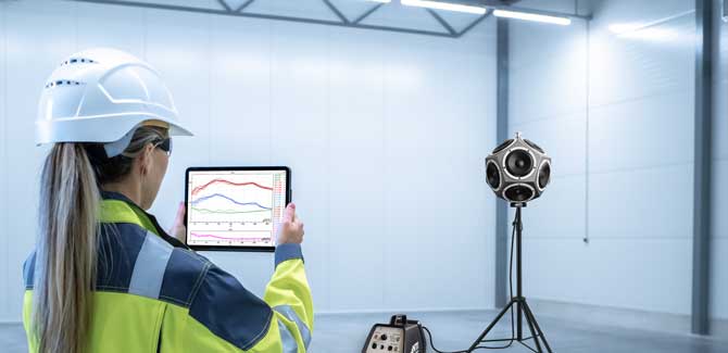 27. November 2020 On-site Sound Insulation Measurements Taking building acoustic measurements requires expert knowledge and experience. The well-trained specialist understands which tools are essential to the task, and how the tests should be set up in order to meet the various national standards. It is important that the results obtained are accurate and reliable, particularly if the measurements take place when the building is still a shell. It can also be advantageous when the measuring equipment is not heavy to carry, especially when the elevators are not yet in operation. The Right Equipment For a complete, standard-compliant measurement, an omnidirectional loudspeaker fills the sending room (L1) with sound energy, which is measured with 1/3rd octave resolution. At the same time, spectral sound pressure levels are measured with the same resolution in the receiving room (L2). In addition, the reverberation time in the receiving room, as well as the ambient sound level of the receiving room when it is quiet, must be measured in order to identify their potential influence on the sound insulation results. Depending on the standard applied and the room geometry, these measurements are performed with the microphone and loudspeaker located at several positions, and the results averaged. Process Simplified with the Right Software The Sound Insulation Reporter software is the ideal tool for your measurements. It offers several functions that help you to perform the complex workflows reliably and error-free. With pre-configuration, the software can automatically recognize, during data import, whether the measurements were taken in the transmitting or receiving room. These are displayed in different colors. This simplifies the averaging process considerably and allows you to quickly run through what-if scenarios on site. For small rooms, the software also prompts you to perform appropriate corner correction measurements. Parallel Measurements at the Push of a Button Using the Sound Insulation Reporter software, several devices can be operated in parallel and the PA3 amplifier, providing the sound source for the omnidirectional DS3, can be addressed by the measurement sequence. All openings to and from the room must be tightly closed during a measurement. NTi Audio thus offers a flat ribbon cable that can be run, for example, under a door or through a closed window. Alternatively, you can establish a connection to the measurement device via a Wi-Fi network so that the control PC in the receiving room can remotely control all the devices involved (see App Note for Airborne Sound Insulation Measurement). You have a question? Please contact us. Further links to this topic: More about Sound Insulation Reporter PC-Software More about DS3 Dodecahedron Speaker More about XL2 Sound Level Meter Download the AppNote for Airborne Sound Insulation Measurement! Get this press article in RTF format! More News Categories: Room & Building Acoustics Tags: