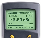 ML1 supports the measurement functions Total Harmonic Distortion plus Noise (THD+N) and 2nd to 5th selective harmonic distortion as dB value or in %. Input level and frequency measurement runs in parallel and balance indicator finds defective cables.