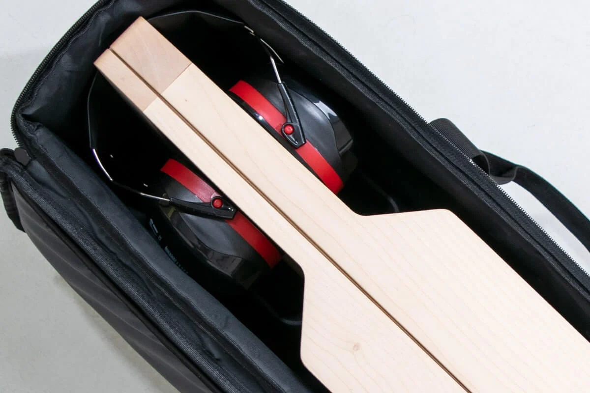 Due to the high level (up to 128dB peak) and the proximity to your ears during operation, hearing protection is required and included in the scope of delivery. The δ-Clapper can be held both upwards and downwards and is operated by applying an ordinary force. The result is a consistent and reproducible sound.
