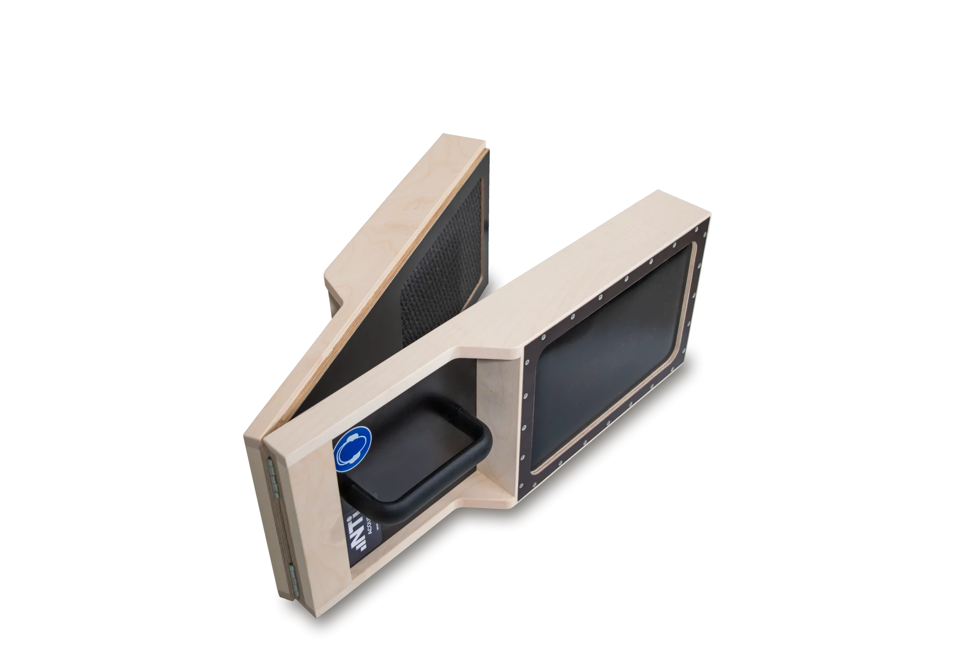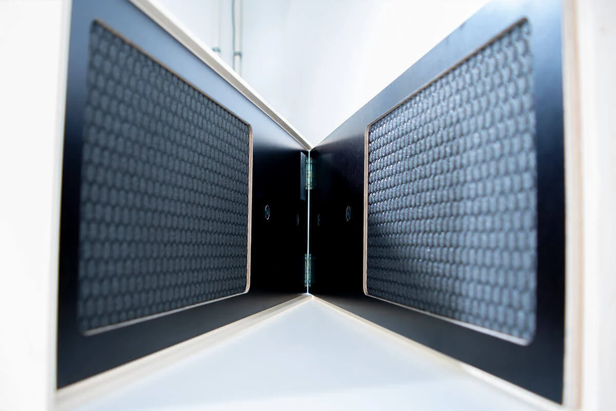 The Clapper consists of a robust plywood frame with elegant, lightweight and durable side panels, an integrated airbrake, and carefully-tuned resonators. The construction is maintenance-free.