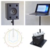 12. abril 2016 Directivity of Microphones in Portable Devices Portable devices such as smartphones, tablets or laptops are often used in hands-free mode for telephone calls. For the manufacturer of the device, it is important to ensure that the microphone is able to pick up the speech from all directions so that the user is well understood. With the new version of the microphone test software RT-MicFX, NTi Audio offers a simple and convenient method to determine this microphone directivity. Portable devices are used extensively in our daily verbal communication, and more and more communications applications are being launched. Often, such portable devices are utilized in a hands-free mode; the device stays in one place, and the user moves freely in space. This presents a challenge - the intelligibility of the speech should remain clear and consistent, regardless of the talker’s position. Some devices employ more than one microphone to increase the number of positions from which speech can be detected and thereby improve the quality of the spoken message. From the perspective of the testing engineer, measuring a microphone in such an environment may seem formidable because the signal received by the microphone generally cannot be forwarded in real time to an audio measurement system. With the NTi Audio microphone test system this task is made very easy. The device to be tested is placed on a turntable. This is located in front of a sound source. The measurement is carried out in two sequential steps: a) First, the device under test (DUT) is gradually rotated 360 degrees. At predefined angles, a sound is played to indicate that the test signal is about to start. This trigger signal is required in step 2. A gliding sweep test signal is then played towards the DUT. All signals received by the microphone are continuously recorded, for example, with a voice recorder app within the device. b) In the second step, the headphone jack of the DUT is connected to the FX100 Audio Analyzer and the recorded sequence of test signals are replayed. The measuring system automatically recognizes the trigger signal, analyzes the test signal that follows and creates a polar diagram of the microphone. Both the turntable and the FX100 Audio Analyzer are driven by the RT-MicFX PC-software. The polar diagrams can be customized through the choice of frequencies, color, degree of smoothing and interpolation. The RT-MicFX Software 2.70.0 version is available as a free update to all owners of RT-MicFX software at the NTi Audio Support website. More information about microphone testing. Any questions? Contact us by email Categories: Archive Tags: