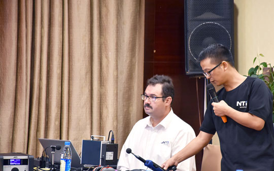 04. septiembre 2019 Exitoso seminario para clientes en Suzhou El 28 de agosto de 2019, NTi Audio organizó un seminario para clientes en Suzhou, China. Los clientes de NTi Audio de toda China se reunieron para conocer nuevos productos y compartir sus experiencias prácticas con los equipos de NTi Audio. El seminario proporcionó una plataforma de debate en la que los participantes pudieron presentar su propio trabajo y aprender unos de otros. La mayoría aprovechó esta oportunidad y participó activamente en los debates. Además del equipo local de NTi China, tres oradores invitados estuvieron presentes. Gregor Schmidle de la sede central de NTi Audio en Liechtenstein, el profesor Wang Peng de la Universidad de Tsinghua, y Hua Shi del Centro de Pruebas de Calidad de Ingeniería de Construcción de Zhenjiang. En el primer bloque se trataron las medidas de los "Smart Devices". Este tema se está volviendo cada vez más importante. Cada vez más dispositivos y sistemas contienen interfaces de entrada y salida para instrucciones de voz. Por lo tanto, el número de componentes acústicos instalados aumenta constantemente. Estos sistemas, en su mayoría cerrados, requieren métodos de prueba adaptados, que fueron discutidos y demostrados prácticamente por Gregor Schmidle. El profesor Wang Peng ofreció entonces una visión de su trabajo como experto en acústica. Describió sus experiencias con el XL2 Analizador de audio y acústico. Participó en numerosos estudios de caso, como la puesta en funcionamiento del Centro Nacional de Acuáticos de Bejing. Otras conferencias incluyeron los temas "Medición del aislamiento acústico a ruido aéreo" y " Control de calidad de los micrófonos digitales MEMS". El evento final fue la presentación de Hua Shi, en la que presentó casos de estudio de medidas de acústica de edificios. Cada conferencia fue seguida de un debate en el que se trataron las preguntas de los participantes. Al final del día hubo tiempo suficiente para hacer nuevos contactos y mantener los ya existentes. El equipo de NTi China también ofreció consultas sobre proyectos individuales. Un participante del seminario dijo: "Este tipo de evento es la mezcla correcta entre la teoría y la práctica. Hoy he aprendido mucho". Más enlaces a estos temas: Más información sobre Dispositivos Inteligentes Más información sobre el analizador de audio Flexus FX100 Más información sobre el sonómetro XL2 Más información sobre la acústica de salas y edificios Descargar fotos de prensa Categories: Empresa Tags: