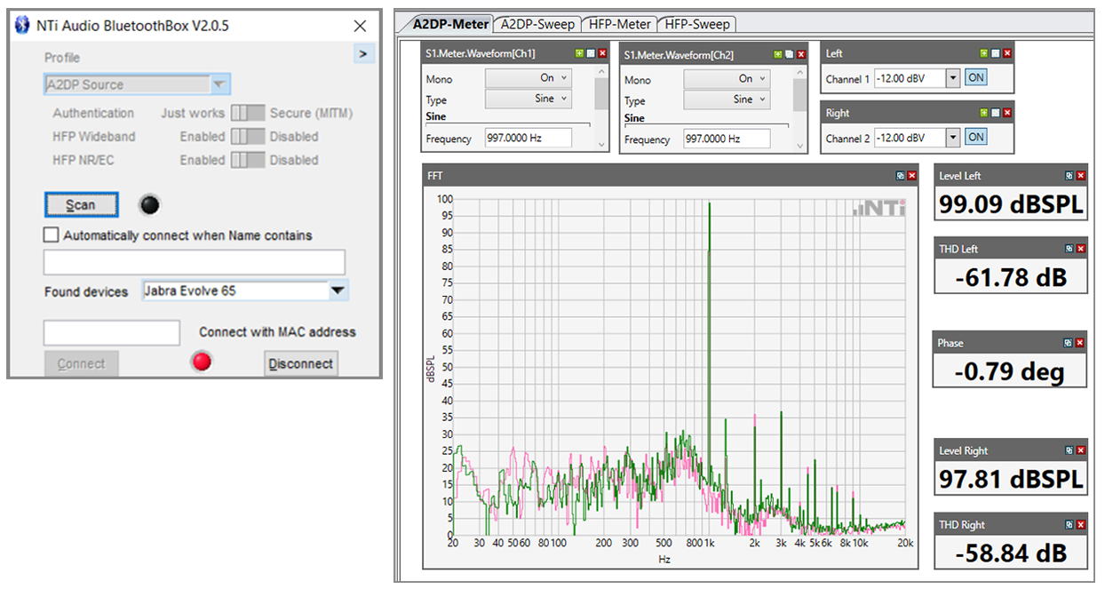 20. octobre 2020 Comment tester les appareils Bluetooth Bluetooth est l'interface standard pour la transmission sans fil de la musique et de la parole. Elle permet de connecter des haut-parleurs, des casques, des écouteurs et des oreillettes à des appareils tels que les téléphones portables, les ordinateurs, les systèmes de divertissement et les autoradios. Mais comment tester la qualité audio des appareils dotés d'une interface Bluetooth? De quoi faut-il tenir compte? La norme Bluetooth définit différents types de communication pour différentes applications. On les appelle les profils Bluetooth. Il existe trois profils pertinents pour la transmission de signaux audio: A2DP Le profil de distribution audio avancé ou Advanced Audio Distribution Profile est utilisé pour diffuser des signaux stéréo en qualité HiFi. Le codec SBC standard permet des fréquences d'échantillonnage allant jusqu'à 48 kHz. Les codecs AAC ou APTx sont utilisés en option. Il existe un profil A2DP Source et un profil A2DP Sink. Les appareils A2DP Source typiques sont les téléphones mobiles, les tablettes ou les téléviseurs. Les appareils A2DP Sink typiques sont les haut-parleurs, les casques, les écouteurs ou un autoradio. HSP Le HeadSet Profile ou Profil casque est utilisé pour la transmission bidirectionnelle de la voix. Le codec SCO fournit un taux d'échantillonnage de 8 kHz. Cela correspond à la largeur de bande d'une connexion téléphonique classique. Il existe une distinction entre les profils HSP Gateway et HSP Client. L'appareil HSP Gateway typique est un téléphone mobile. Les appareils HSP Client typiques sont des casques ou des écouteurs. HFP Le HandsFree Profile ou Profil mains libres est également utilisé pour la transmission bidirectionnelle de la voix, mais offre des fonctionnalités étendues par rapport au profil HSP. Il est possible, par exemple, de transférer le carnet d'adresses du dispositif Gateway au client, et le codec MSBC fournit un taux d'échantillonnage de 16 kHz pour une meilleure qualité de la parole (par exemple pour les appels Skype). Il existe une distinction entre HFP Gateway et HFP Client. Les appareils HFP Gateway typiques sont les téléphones mobiles ou les ordinateurs. Les appareils HFP Client typiques sont les autoradios, les casques ou les écouteurs. De nombreux appareils prennent en charge ces trois profils. Le profil approprié est sélectionné automatiquement en fonction de l'application. Appairage La norme Bluetooth 5.1 actuellement utilisée ne prend en charge que les connexions entre 2 appareils (source avec sink, ou gateway avec client). Le processus de connexion de deux appareils Bluetooth est appelé "appairage". Seuls les appareils qui prennent en charge des profils compatibles peuvent être connectés entre eux, tels que A2DP Source avec A2DP Sink, ou HSP Gateway avec HSP Client. Pour ce faire, les deux appareils sont mis en "mode appairage". Les appareils A2DP Source ou HSP / HFP Gateway recherchent généralement les appareils A2DP Sink ou HSP / HFP Client disponibles et les affichent dans une liste sur un écran. L'utilisateur sélectionne ensuite le périphérique souhaité. Pour les autoradios (HFP Client), il est également courant que le processus de couplage soit sécurisé en comparant et en confirmant un code PIN affiché sur les deux appareils. Rechercher les appareils disponibles peut prendre du temps, surtout lorsque de nombreux appareils Bluetooth sont en mode appairage. Une méthode d'appairage plus rapide consiste à sauter le processus de recherche et à appeler directement l'appareil souhaité avec son adresse MAC (Media Access Control). Cette méthode est principalement utilisée pour les tests des appareils Bluetooth dans le process de production. La Box Bluetooth NTi Audio La Box Bluetooth NTi Audio connectée à l'analyseur audio FX100 permet de tester de manière simple et pratique l'interface Bluetooth des appareils audio. Les signaux audio reçus et envoyés sont convertis en signaux analogiques et fournis sur des connecteurs XLR. Tous les profils décrits ci-dessus sont pris en charge. Le processus d'appairage peut être effectué manuellement ou automatiquement. Lorsque le processus d'appairage est terminé, un signal de déclenchement est envoyé à l'analyseur audio FX100 pour lancer la mesure. Connexion d'un casque Bluetooth et mesures FFT Des questions? Contactez NTi Audio Autres liens sur le sujet: En savoir plus sur la Box Bluetooth NTi Audio En savoir plus sur l'analyseur audio Flexus FX100 Cliquez ici pour regarder l'enregistrement du webinaire. NTi Bluetooth Box Données techniques Obtenir cet article au format RTF! Plus d'actualités Categories: Contrôle de la qualité Tags: