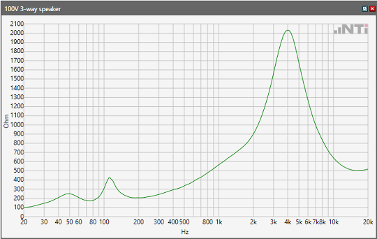 Exemple de réponse d'impédance d'un haut-parleur de 100 V: