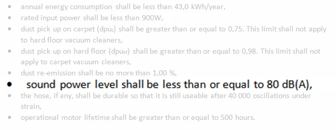 Réglementation européenne sur la puissance acoustique des aspirateurs