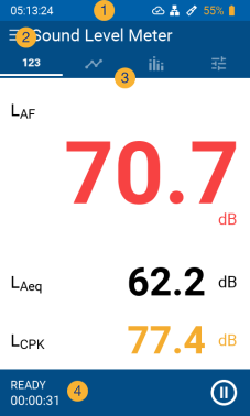 Display area of the measurement results. The preferred display can be selected by swiping left/right on the touchscreen, or via the |