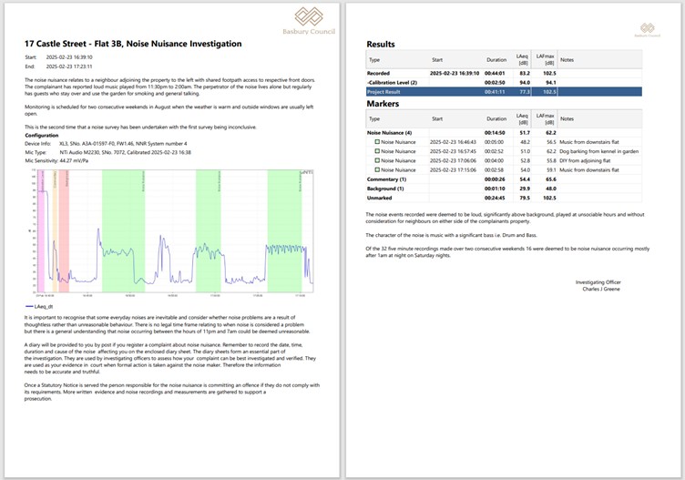 09. abril 2025 NNR System – an evolution in noise nuisance assessment Experiencing persistent noise nuisance is common for many people particularly in cities and towns with high population densities. Such unreasonable noise can affect well-being, the ability to get restful sleep and is generally disruptive or emotionally irritating. Documenting and collecting evidence of noise nuisance can encourage the local authority to use its legal powers to minimise or even remove the noise issues. Gathering evidence for noise nuisance investigation traditionally involves installing precision grade noise measurement and recording equipment in the complainant’s property for a week or so with instructions for the resident to activate a sound recording using a hand-switch whenever disturbed by noise. The noise officer then retrieves the equipment and reviews the measurements and recordings to determine if there is indeed a statutory noise nuisance. The NNR system offers a step-change improvement to this traditional approach of evidence gathering, by offering web-based connectivity with the equipment while it is present in the complainant’s property. This remote access offers a number of notable benefits for the investigating officer including, Reassurance anytime, day or night, that the NNR system is operating correctly Ability to correct instrument setup errors remotely Verifying that the complainant has successfully made a number of recordings Download and review noise measurements and recordings while the equipment is still installed at the complainant’s property Smart decision making on when the equipment can be retrieved and thereby optimising equipment deployment. The system can of course also be operated in the traditional way without remote web-based connectivity with the installed equipment. The discrete ‘case-within-a-case’ deployment of the equipment in the property is included for both the online and offline versions of the system. Review and reporting of measurements and recordings is a key task in the investigation and the Data Explorer PC software offers a quick and easy assessment of the noise levels during the replay of recordings or for comparison of nuisance levels with the normal background levels in the absence of noise events. The Data Explorer software can be installed on as many PC’s as required without restriction as the software license is installed in the measurement system and integrated into the resultant data files. Finally the measurement device at the heart of the NNR system is the XL3 Sound Level Meter which offers precision grade Class 1 measurement in accordance with the IEC 61672:2013 sound level meter standard. This highly competent sound level meter can also be removed from the NNR system and used as a hand-held meter for entertainment licensing surveys, investigating industrial noise issues, planning application tasks and construction site noise compliance measurements. For further information on the NNR system or to arrange a short demonstration of the use of the equipment and software, please visit the NNR page on the NTi Audio website, click here. Categorias: Empresa Tags: